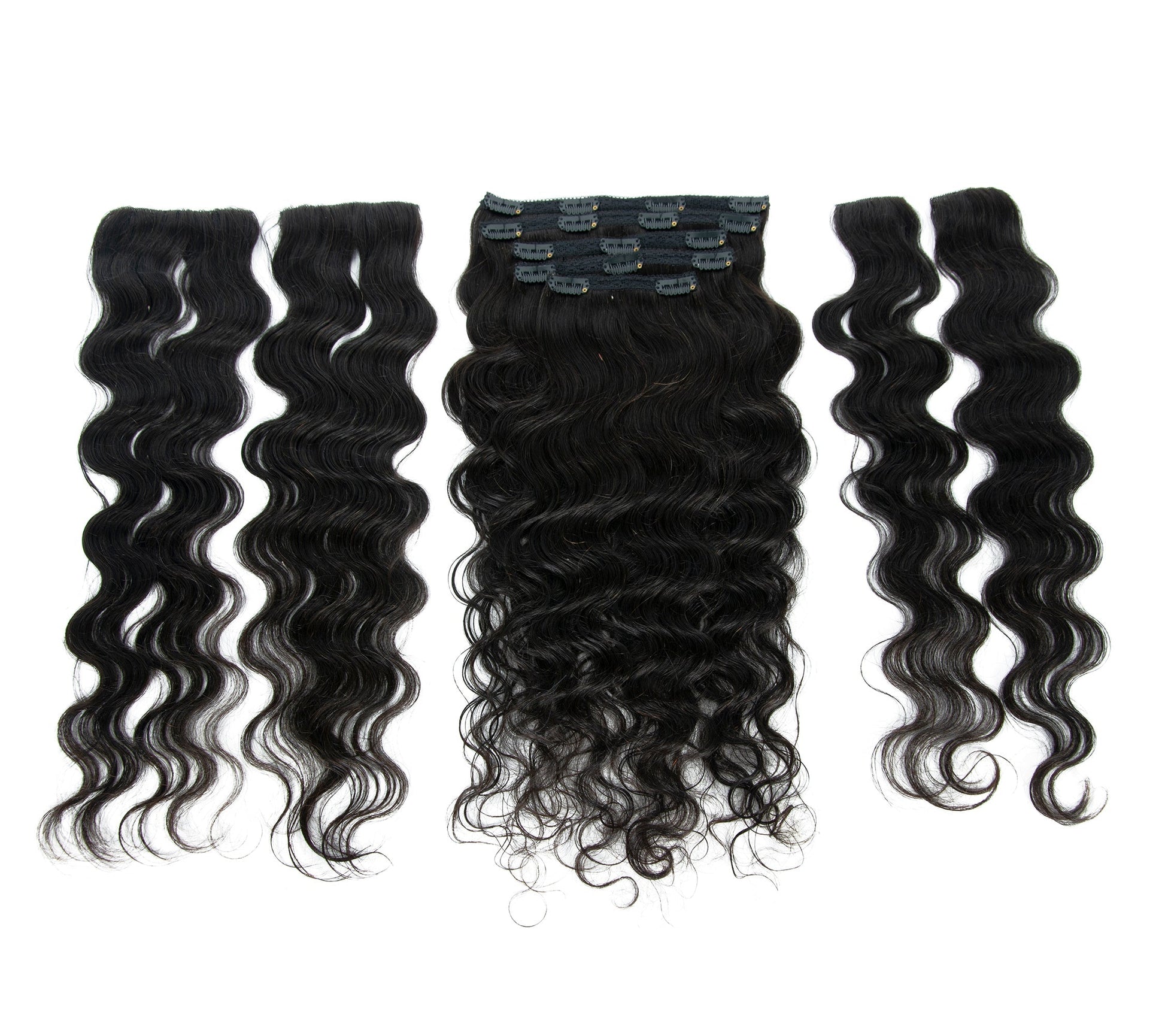 • Features 4 Patent Pending Luxury InvisiRoot™ Clip ins (AKA TrueRoot™ Clip-ins) (2 normal size, 2 extra small size for long bangs or other styles) and 5 traditional weft clip ins.